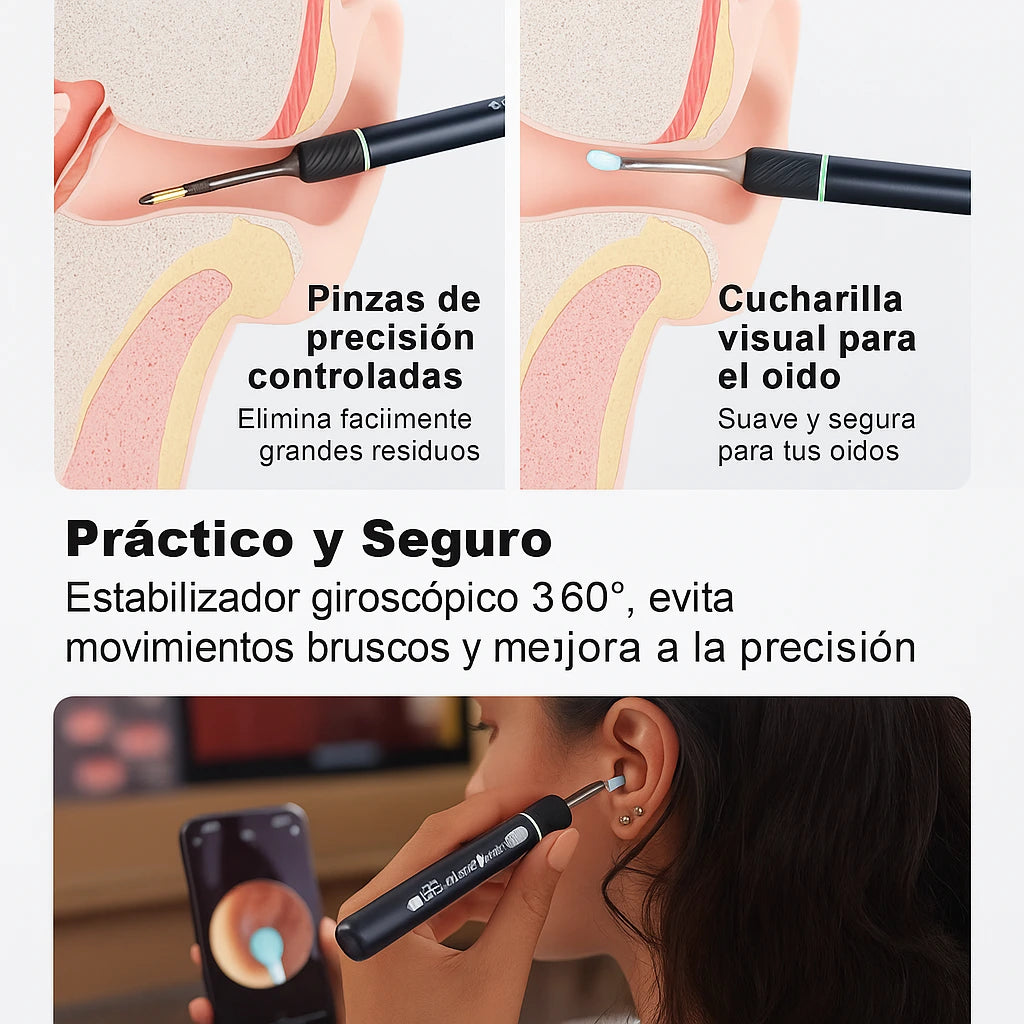 Limpiador de oídos con cámara -Dile adiós a los oídos tapados: limpia con visión HD y precisión total